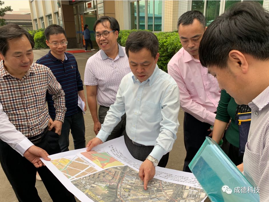 4月17日,順德區委常委梁偉沛帶隊,區委區政府辦公室副主任潘民權、大良街道國土城建和水利局局長張宇航及村改辦、順控集團等一行蒞臨成德科技,現場調研指導“村改”項目。公司董事長吳子堅、總經理林燦榮參與接待。